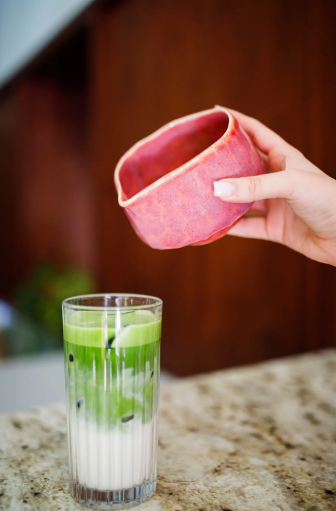 Jej intenzívna farba priťahuje pozornosť a nádherne kontrastuje so zelenými odtieňmi matchy, čím premieňa prípravu čaju na estetický zážitok.